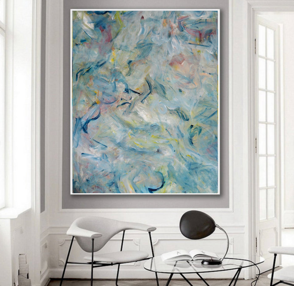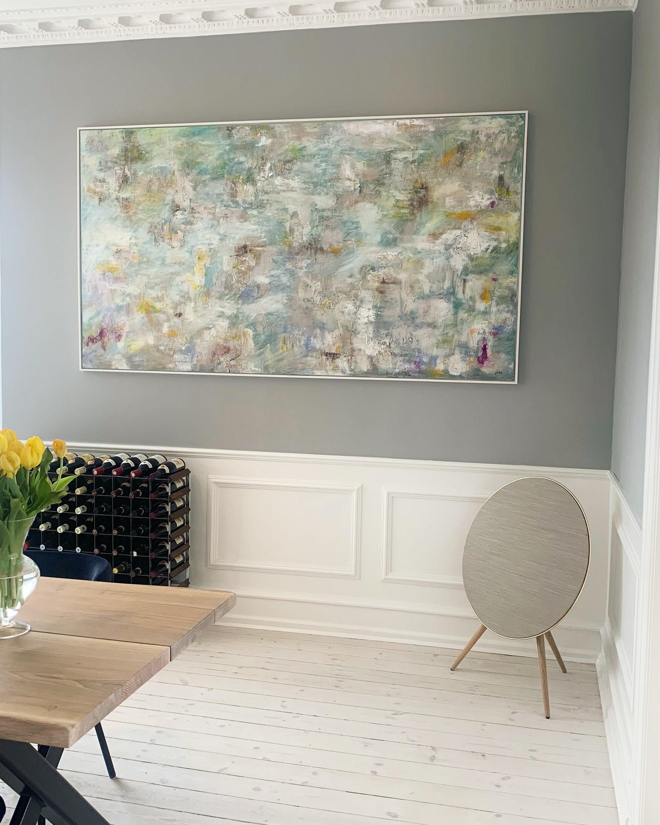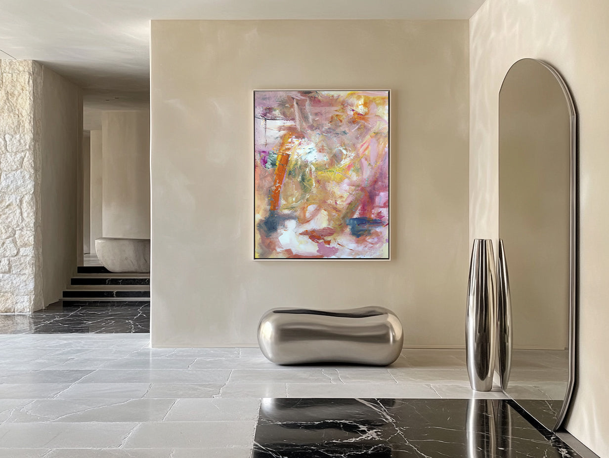 “In the Air” is a large-scale painting created to bring positivity to the clients home. Sophisticated yet full of movement, it serves as a captivating focal point, perfectly suited to the space.