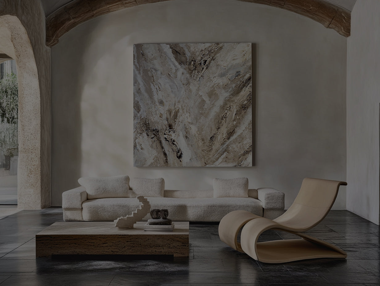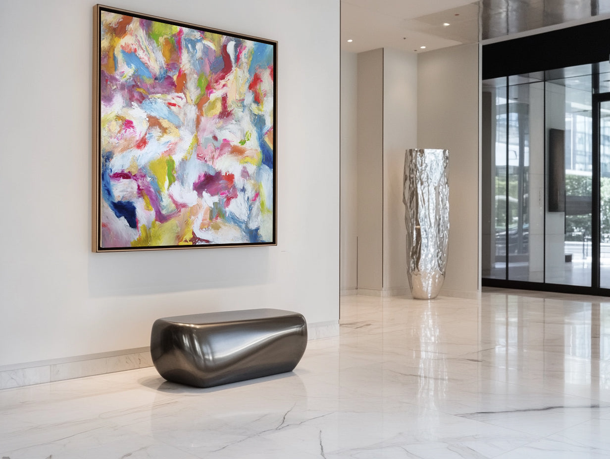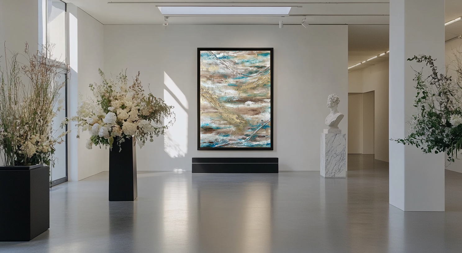 Commissioned as a focal point for a couple’s home, “Flowing” is a large-scale, textured artwork inspired by the ocean’s dynamic, endless motion. Its fluid forms and rich textures create a sense of life and movement, infusing the space with energy and depth.