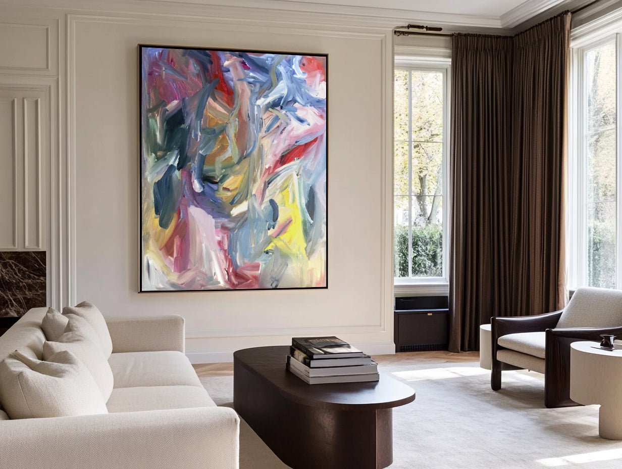 Commissioned by a lovely client, this artwork was crafted to reflect her unique taste and warm personality. Through carefully chosen colors and textures, the piece radiates colourful individuality, bringing a unique beauty to her space. This bespoke creation was designed to feel deeply personal, capturing an atmosphere of boldness and joy that mirrors the client’s spirit.